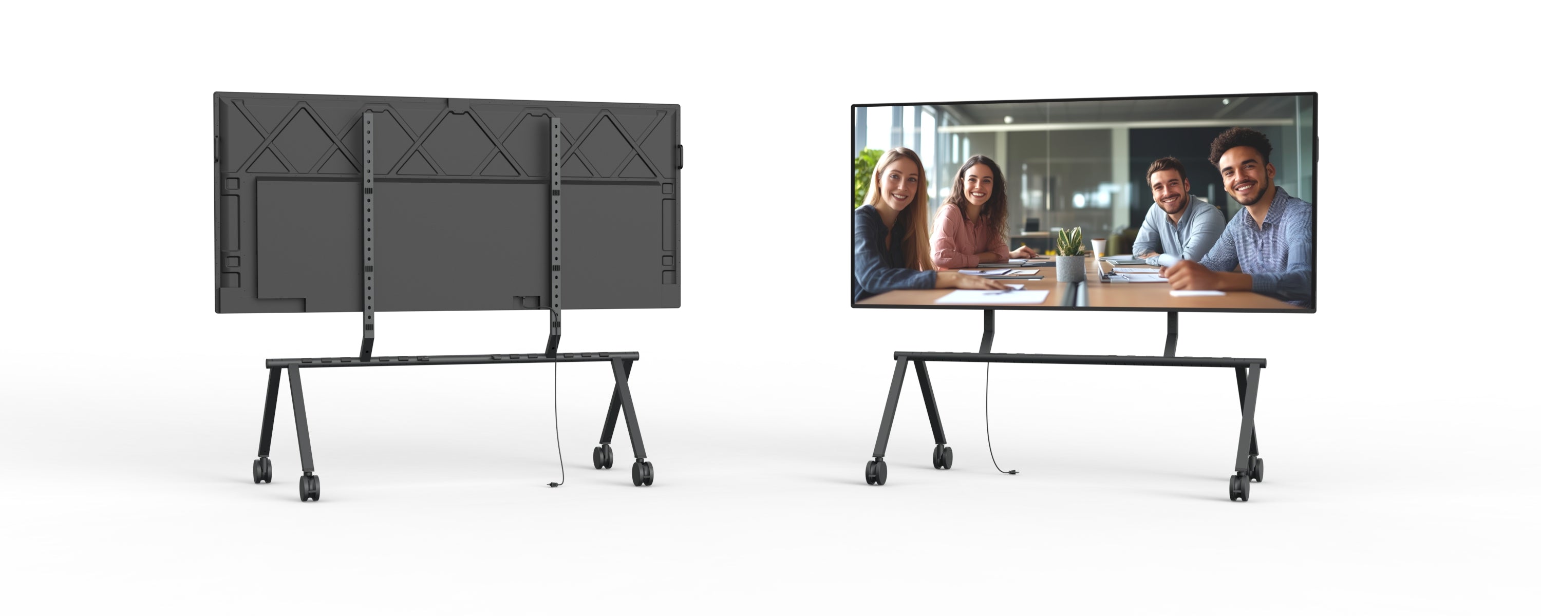 Fast display mounting. Clean cable management. One rolling stand for conference rooms, training spaces, events, and shared AV deployments.