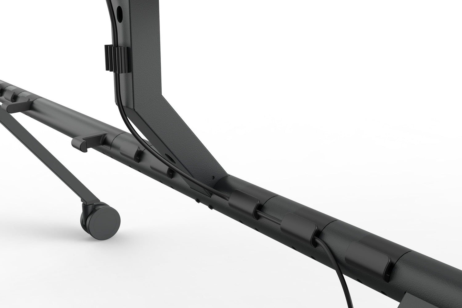Every XL Display Stand MkII ships with cord wraps and cable routing accessories. Accessories mount to sockets along the beam for clean cable management tailored to each room and deployment.