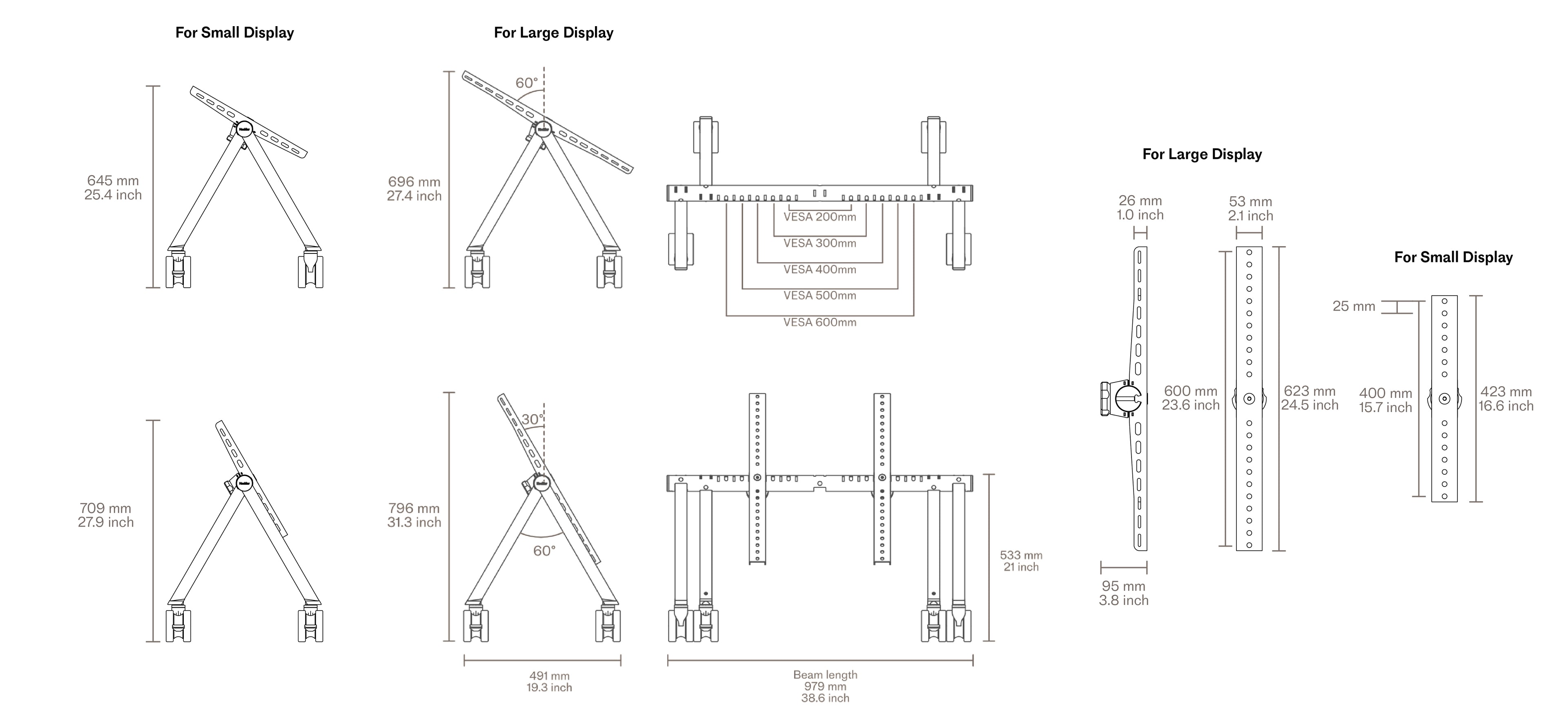 The Heckler Confidence Stand has two sizes. H1012 (Small): VESA up to 400 vertical, 600 horizontal. H1010 (Large): VESA up to 600 vertical and horizontal. Heavy steel, commercial-grade construction. Supports up to 80 lb of display weight. Built for years of demanding daily use.