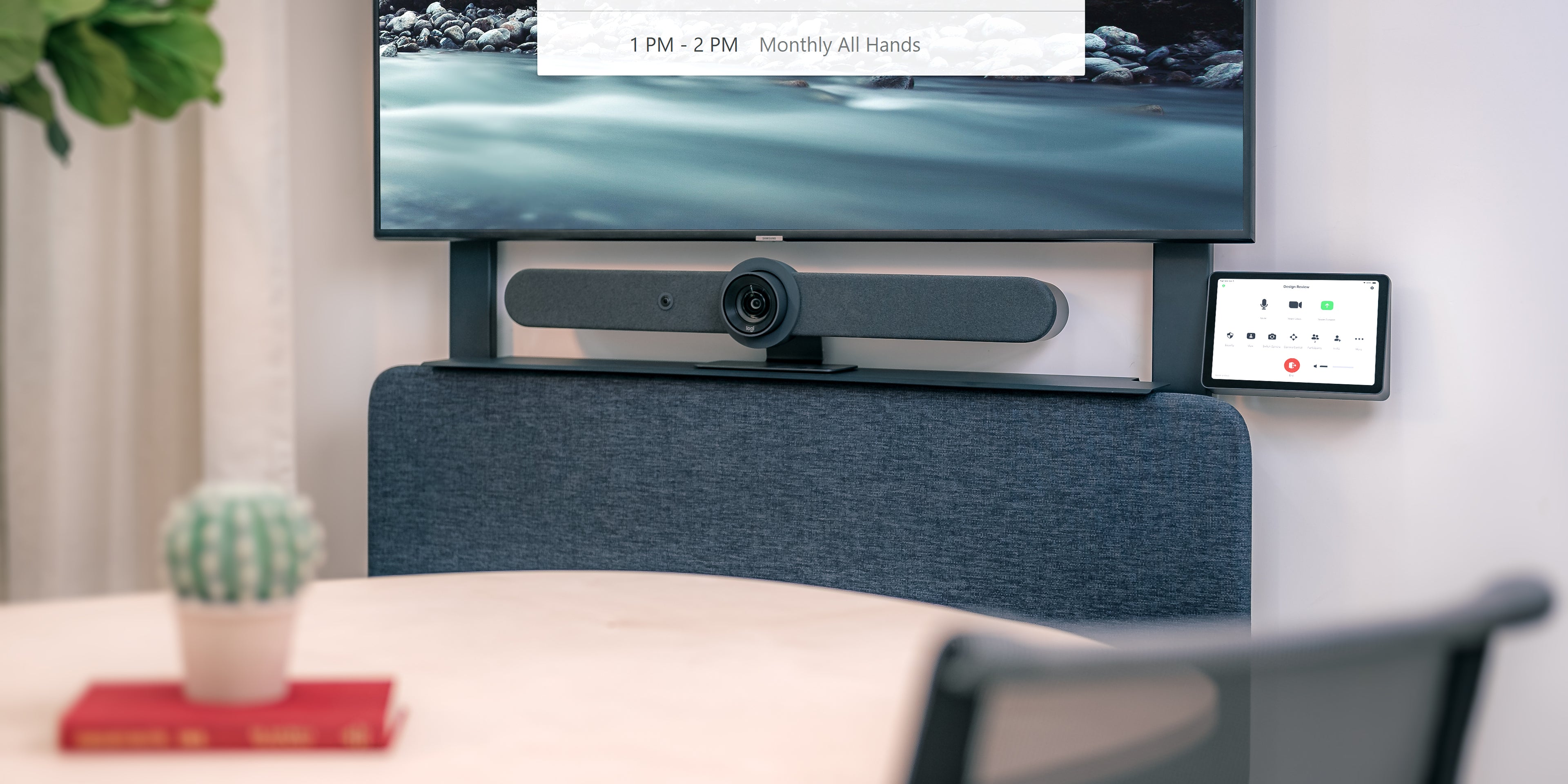 Add a touch controller to your AV Wall video meeting system. Mounts in front of existing wall outlets — no electrician required. Clean look. Complete system.