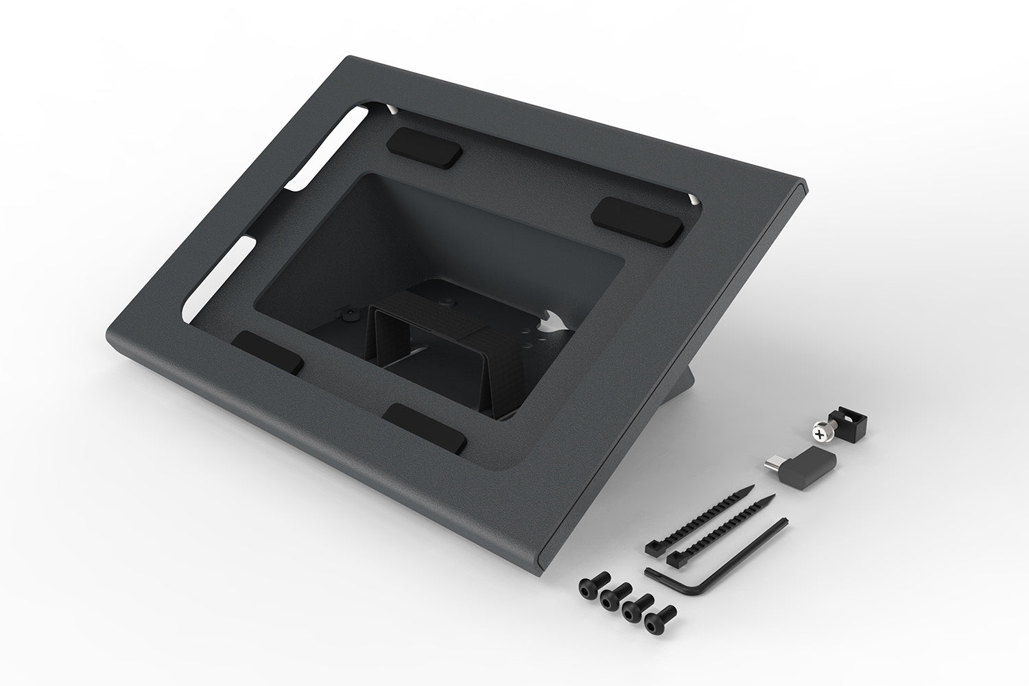 Designed in collaboration with the Zoom team for dedicated Zoom Rooms control on iPad mini. Heckler Zoom Rooms Console positions the iPad mini at a 30-degree viewing angle with VESA 75/100 mounting compatibility. Commercial-grade steel construction with fine-texture powder coat finish. Tamper-resistant assembly with included cord anchor. A PoE + Ethernet adapter (sold separately) adds wired power and networking. Compatible with iPad mini 6th and 7th Generation. TAA compliant.