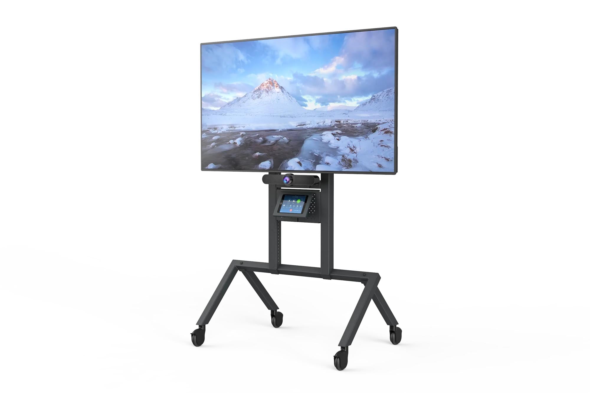 VESA 75 and VESA 100 mounting positions allow the Zoom Rooms Console to attach directly to a Heckler AV Cart for mobile conferencing setups.